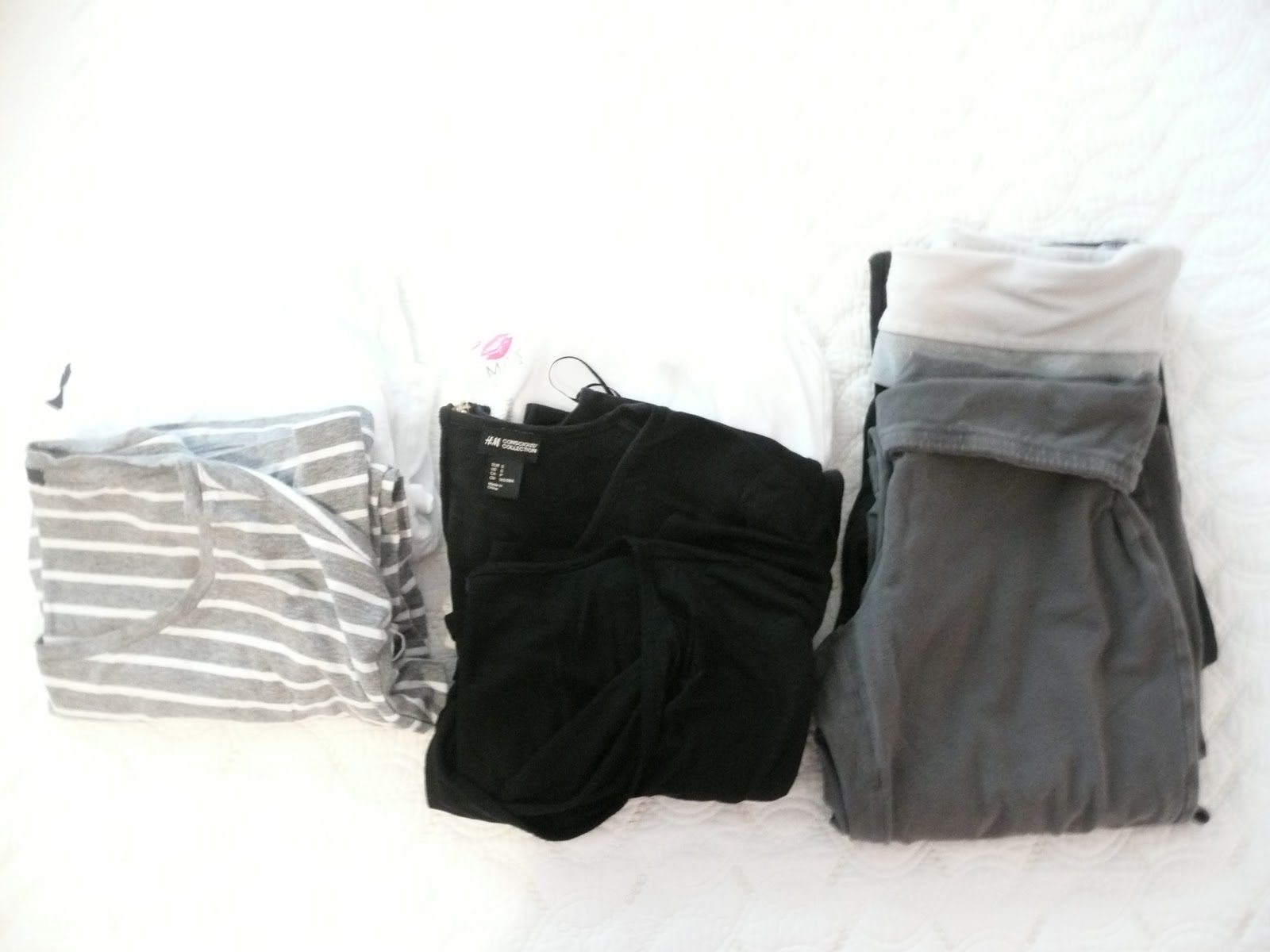 Before I arrived, I did take a few pictures of what I packed. You will notice that most of the clothes are neutrals (mainly grey and black) and sweaters (pullovers, not cardigans) because I did not want to deal with the fuss of coordinating color.