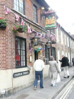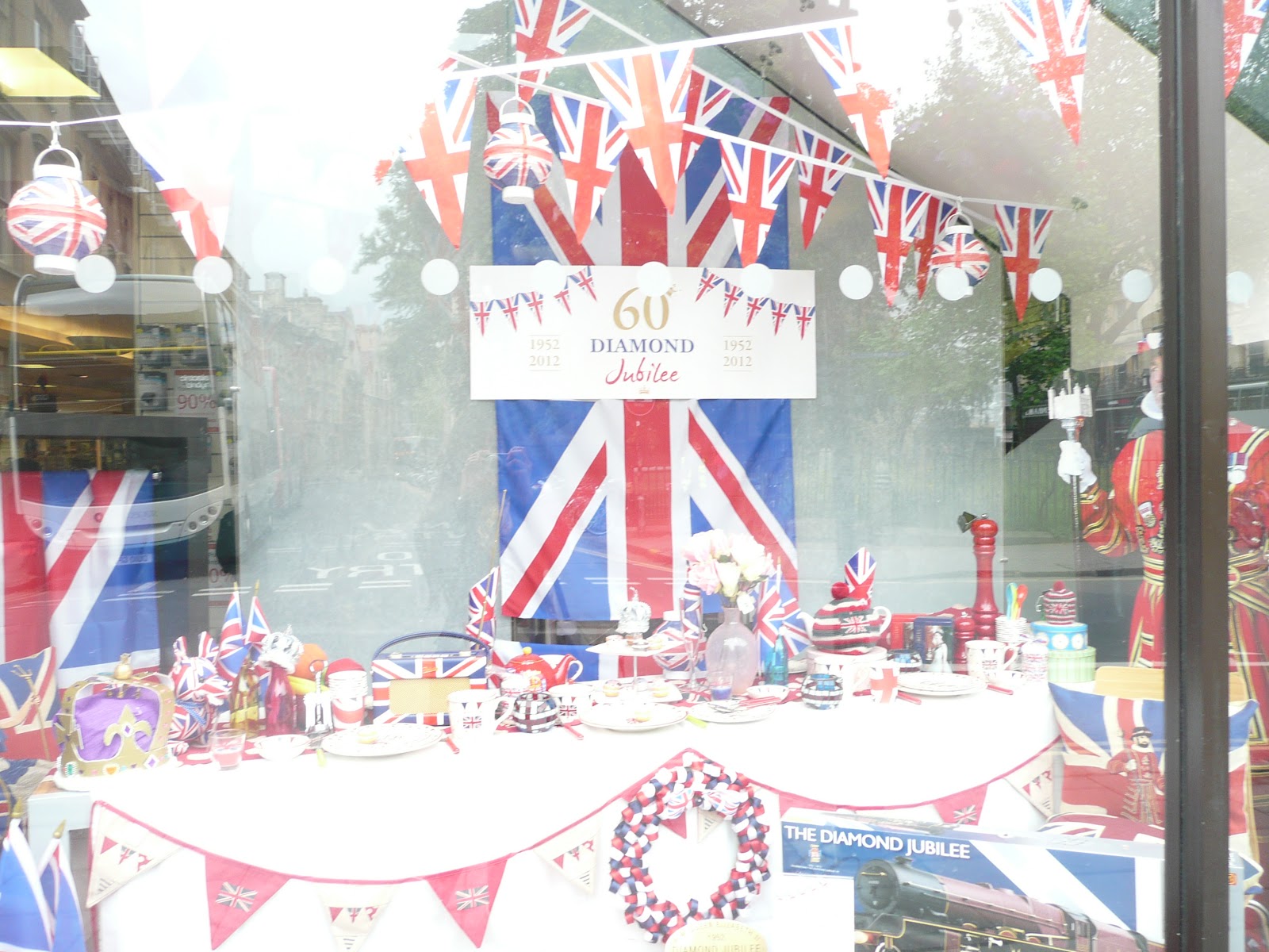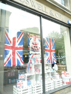 I did not see the Diamond Jubilee Weekend events in London, but other cities in England have had plenty of their own events to celebrate Her Majesty. For the past few days, I have alluded to the jubilee celebrations in downtown Oxford, as well as Brighton. There have been many concerts at various Oxford universities (like Christ Church College), festivals, and parties–as well as decorations at restaurants, pubs, and shops– in honor of the jubilee.