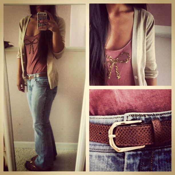 | Today’s Outfit: Cardigan, Old Navy; Tank Top, American Eagle; Jeans, American Eagle; Belt, vintage |