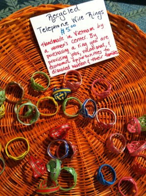 “Mostly, the products that I sell change not only the environment, but they change the lives of the person who made it” by having the proceeds return to the cooperative that benefits the disadvantage artisans. Bracelets made of recycled material from flip-flops, crafted by a cooperative of African women, are just one example of the products sold at her boutique.
