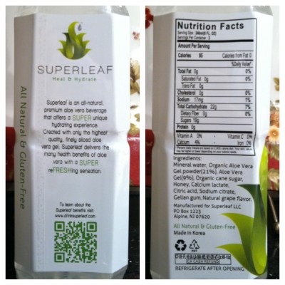 Superleaf is a new refreshing drink made with 30% aloe. Superleaf also has no GMOs, no artificial flavors/coloring and no preservatives.