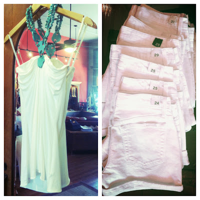 | Laura Jean Denim Shop got this new Sky top in with a turquoise halter (left) and it would look great with the Joe’s Jeans white shorts. |