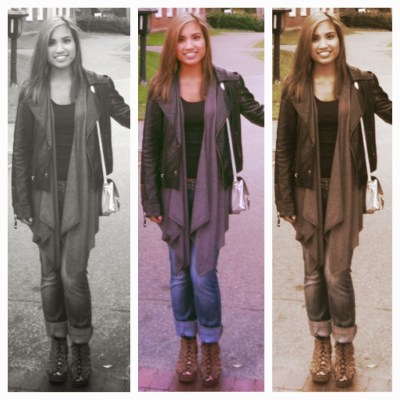 | Friday’s Outfit: Faux Leather Jacket, New York & Co.; Vest, Nally and Millie; Jeans, Express; Bag, Steve Madden; Shoes, H&M |
