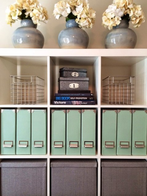 My office is coming along–I have already brought some books and binders from home. I don’t know if I could keep up with fresh flowers at the office, but I love the organization ideas using different boxes, bins and trays.