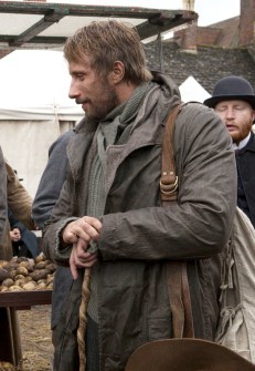 There is a crucial scene in which Mr. Oak and Mr. Boldwood are conversing in Mr. Boldwood’s mansion. As important as their dialogue was, I was absolutely fixated on the effortless appeal Mr. Oak turtleneck, pullover, cardigan and jacket—the colors, the fabrics and the textures of knits should have been enough to swoon Bathsheba Everdene from the opening scene.