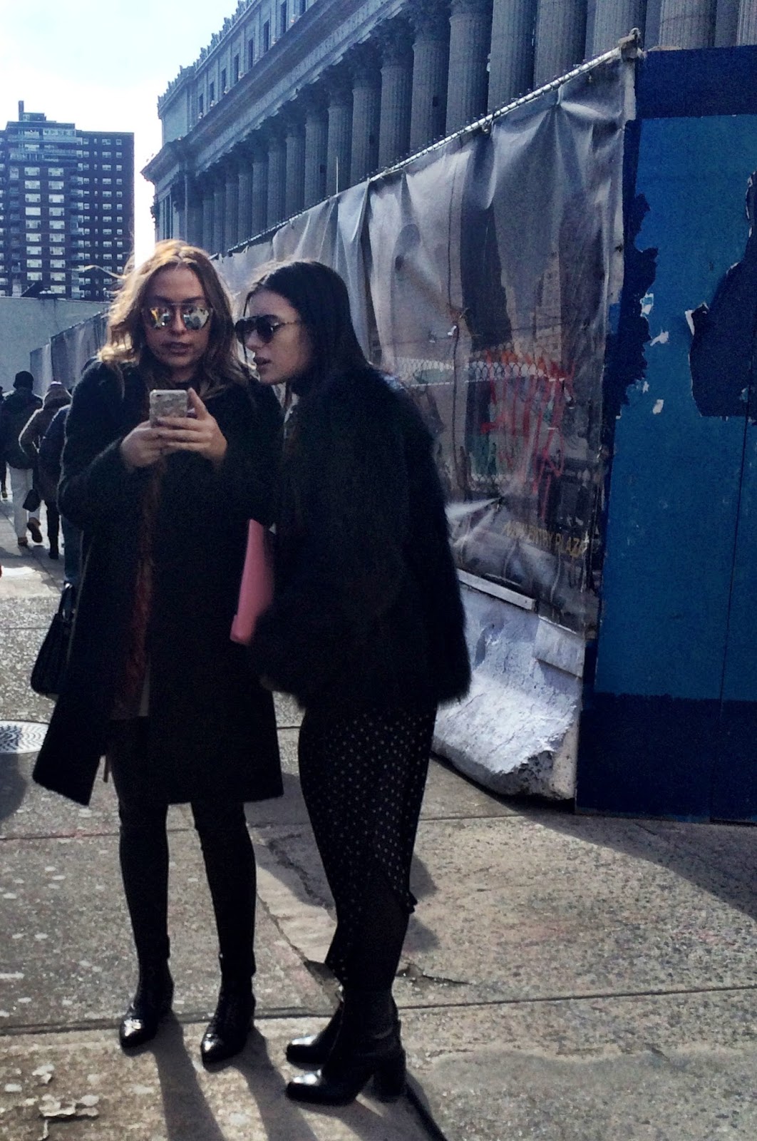 The most exciting thing about standing on the street corner wasn’t so much the seeing the outfits, but observing the whole process— I could cross-reference several Instagram accounts for NYFW street style from the comfort of my own (warm) home and have more time to see all of the garment and accessory details.