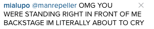 It wasn’t until I saw a picture on Man Repeller’s Instagram account and showed it to Cara that she said that’s who was standing in front of me backstage.