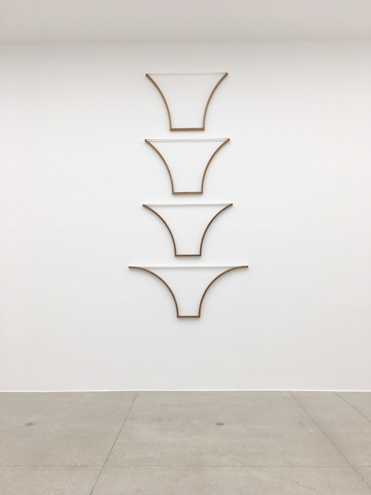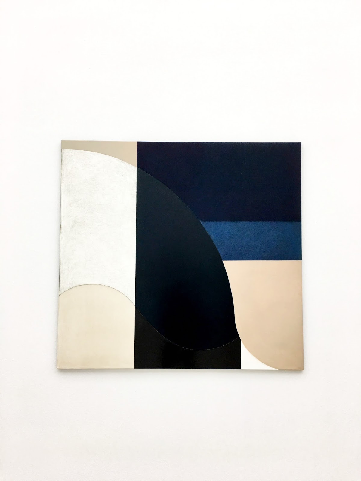 […] the new paintings echo this contrast by juxtaposing straight lines reminiscent of architectural blue-prints with more organic elements: rounded shapes, wavy lines and curves, in which, despite their fragmentary character, there is even a faint suggestion of figurative representation.