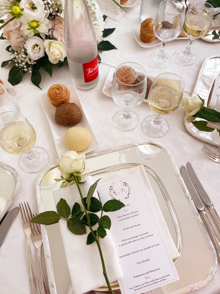 A and her husband, G, were married at the Chiostro di San Francesco and hosted the reception at the Grand Hotel Royal in Sorrento. Pictures and videos hardly capture how perfect the day was—the dress, the venue, the dishes, the music, the everything. With that being said, it was an iconic moment to witness the newly married couple drive away from the chapel in a fiercely red Alfa Romeo.