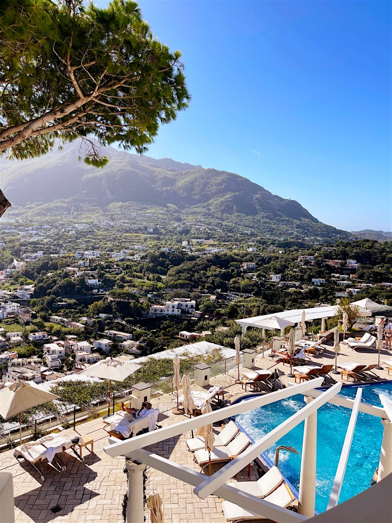 As you can see, the views are hard to top. In conversations with locals and other hoteliers, even they admitted that no other hotel could compete with the panoramic views at the San Montano. Our room overlooked the courtyard and the sea on one balcony and the heated pool and the volcano from the other balcony—it was a true Italian dream.
