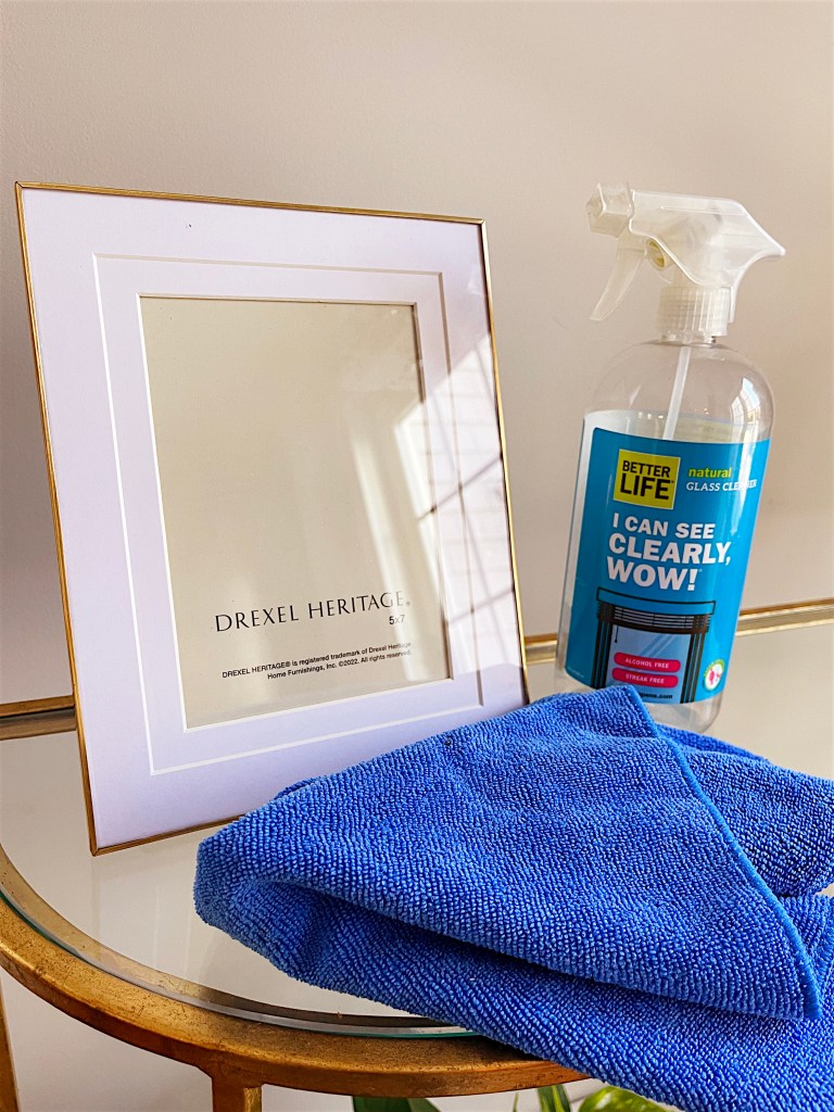 1. Before you start the framing process, gently remove any price tags on the frames of the glass. Clean any remaining glue with streak-free glass cleaner and a microfiber cloth.