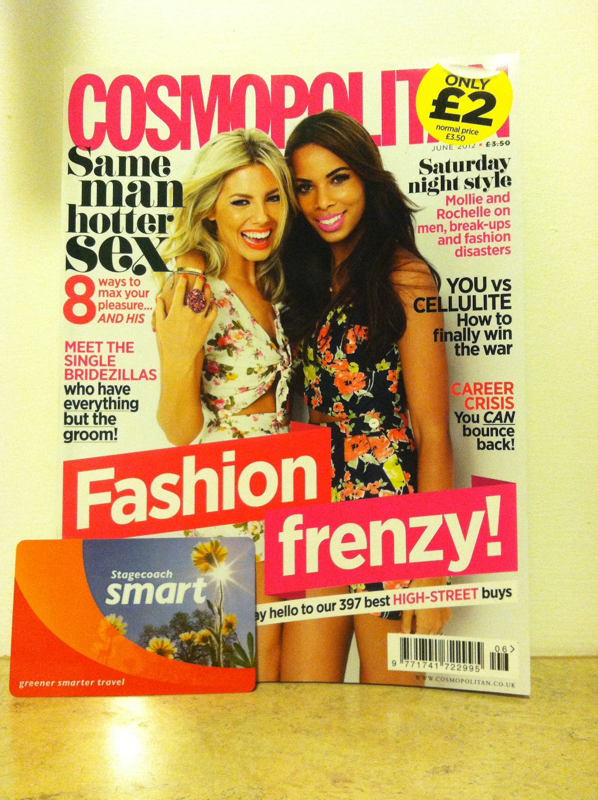 Today I bought a UK Cosmopolitan magazine. At 2 pounds, it was hard not to pass up. I also bought a bus pass that will last through the month and ultimately save money and energy.