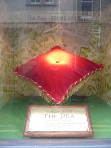 The most bizarre window display was a pea on a red velvet pillow and a small cut-out that read “The Pea–Found At Last!”