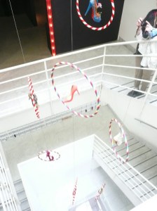 Ever since I found out about the exhibit last winter, I have been dying to go, and I did! The exhibit was everything I could have imagined and more. It covered Louboutin’s early life and career, and more importantly, showcased Louboutin’s masterpieces–the shoes. There was a mini display of shoes on the staircase which can give you a small taste of the exhibit and its cabaret-circus feel.