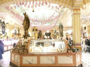 The only reason why I went to Harrods in the first place was because my friend had a gift card there. I knew Harrods was a huge luxury department store, but I did not fully anticipate how HUGE it was. Each floor has every luxury good imaginable–clothing, home, food, wine, sporting goods… Can you say seven floors of heaven? I wish I could take more pictures, but I was told several times no photography was allowed. I did manage to get a picture of a beautiful Alaia jacket, though.