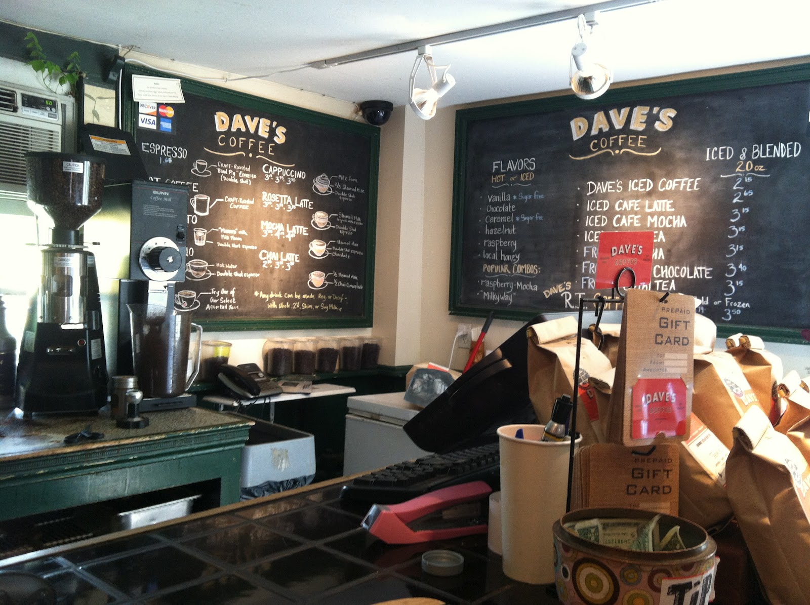 Dave’s Coffee shares the space with Galapagos—tables, and chairs invite customers to sit outside Dave’s after ordering one of their signature iced coffees.