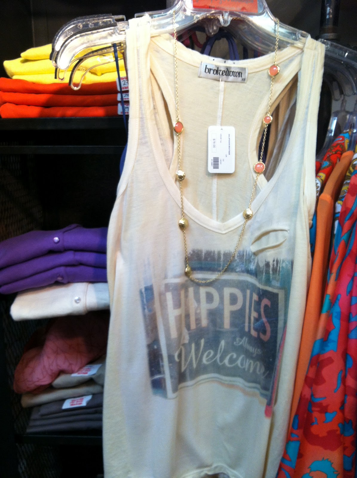 When you pull into the parking lot, there is a miniature waterfall fountain enclosed by a charming garden also complete with a set of chairs to sip your Dave’s Coffee after shopping at Galapagos. At the entrance of the boutique, there is a tree with all of the designer brands nailed to the branches—a designer fashion tree of life.