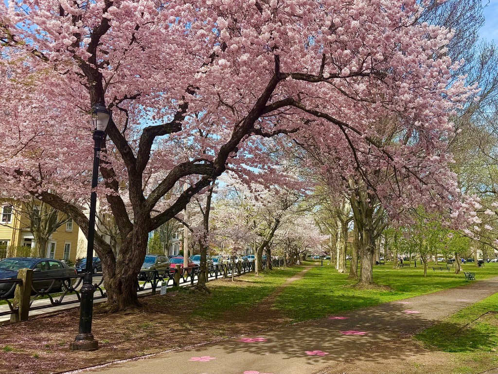 Wooster Square Park has celebrated the arrival of cherry blossom season for over 50 years. Arguably the most well-known display of flowering trees in Connecticut, it’s a great excuse to visit New Haven. Wooster Square Park is a five-minute walk around the corner from the original Frank Pepe’s, one of the iconic New Haven-style pizzerias, and Gioia, which is a bar, restaurant, marketplace, and gelateria all under one roof.
